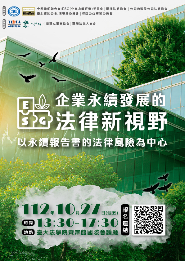 本所資深律師林子堯應邀於「企業永續發展的法律新視野─以永續報告書的法律風險為中心」論壇擔任主講人。