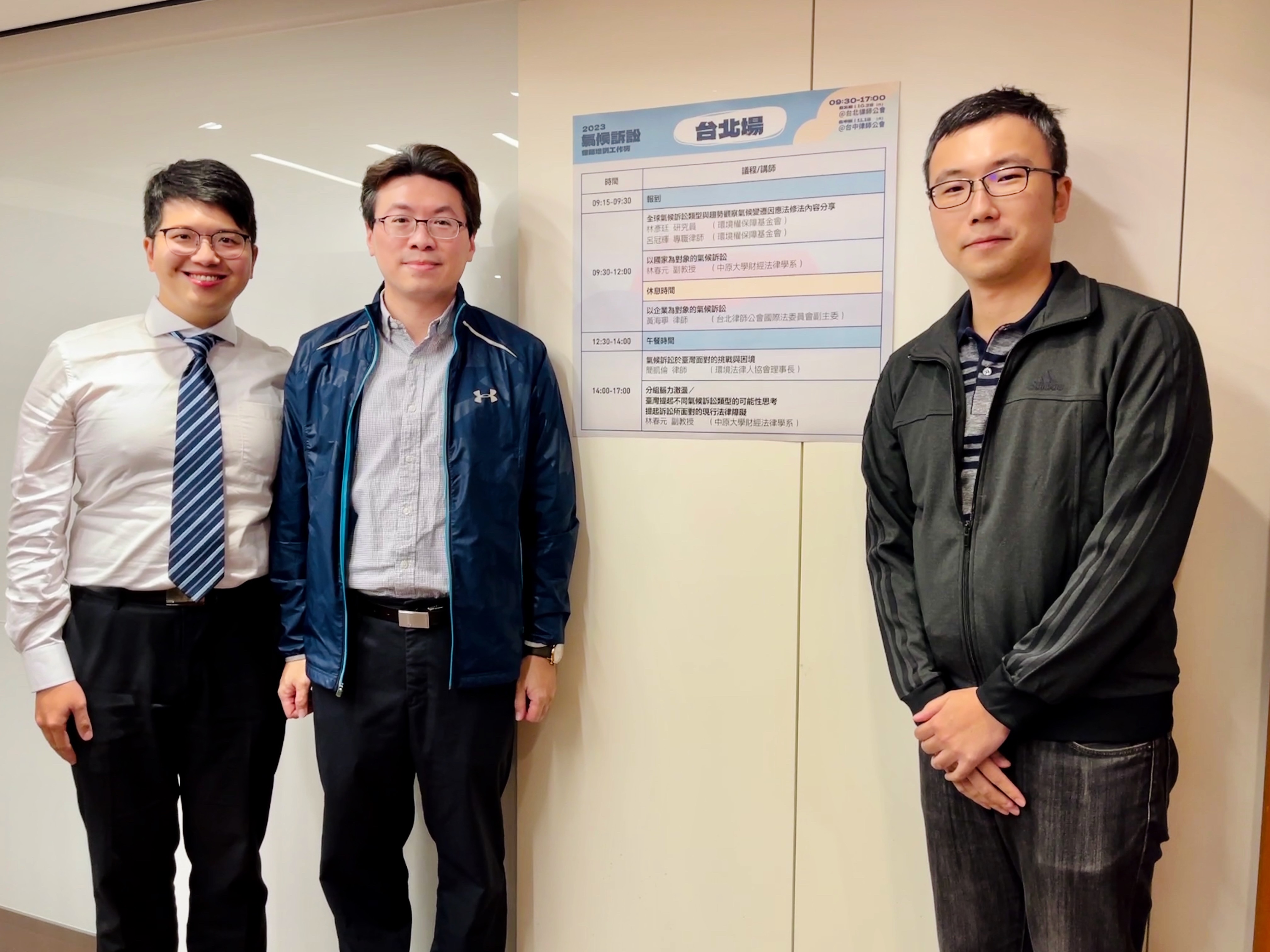 本所陳一銘合夥律師、林子堯資深律師、吳家欣資深律師於112年10月28日參加由財團法人環境權保障基金會、全國律師聯合會及台北律師公會舉辦之「氣候訴訟律師培訓工作坊」