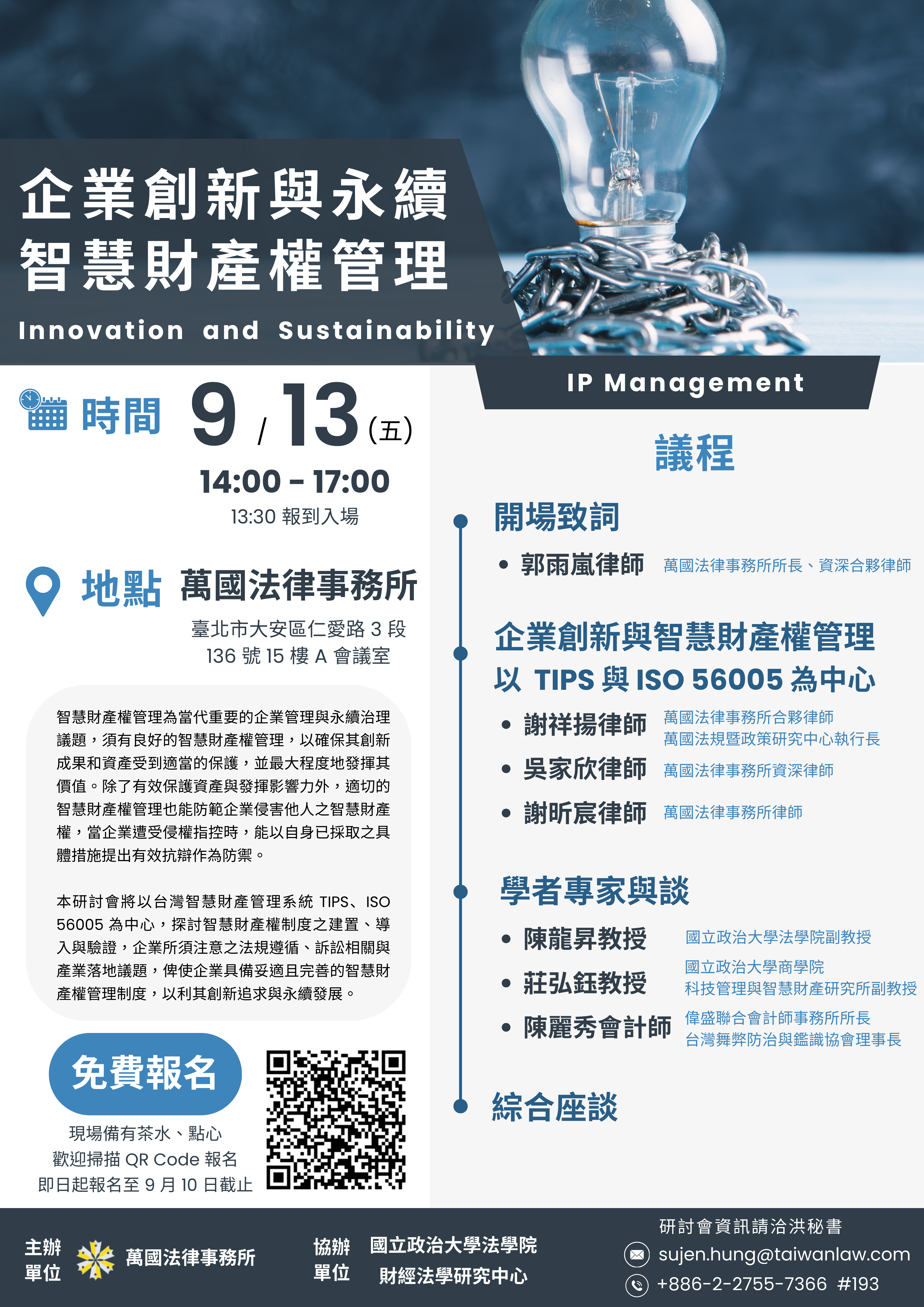 本所主辦【企業創新與永續 - 智慧財產權管理研討會】,歡迎各界踴躍參加。