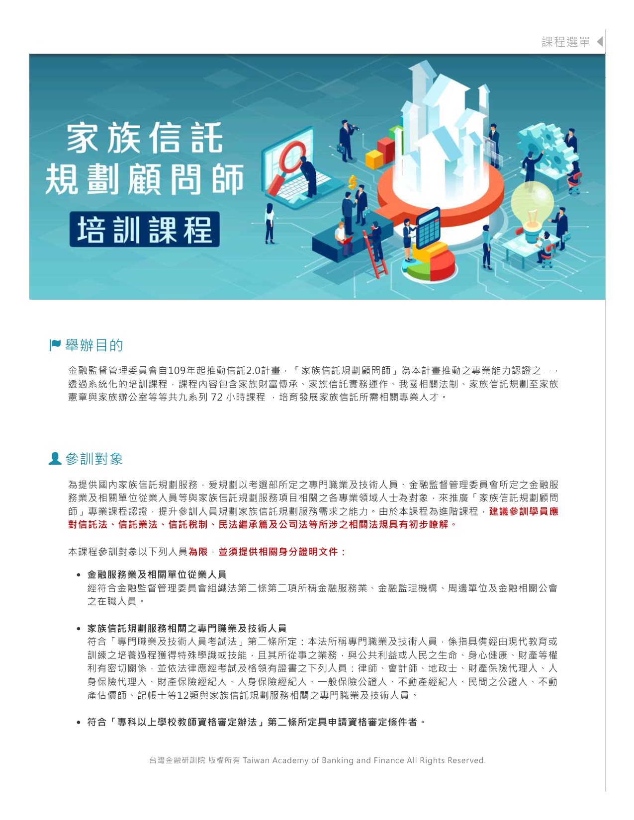 本所范瑞華資深合夥律師繼前五屆課程,續受邀擔任臺灣金融研訓院舉辦之第六屆家族信託規劃顧問師培訓課程講座,分別於5月24日、5月27日、6月15日、6月21日及7月26日於北中南各地進行。